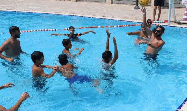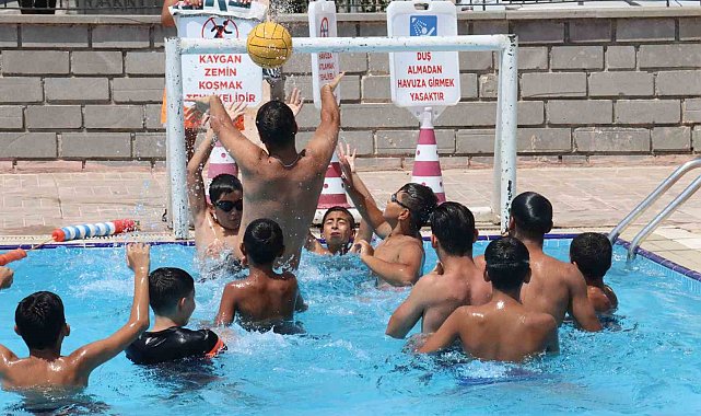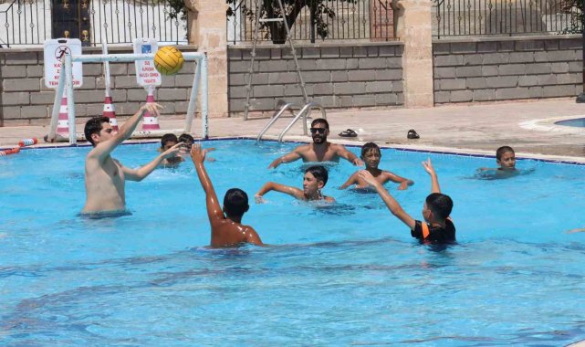 Şanlıurfa Büyükşehir Belediyesi'ne ait yüzme havuzlarından ücretsiz yararlanan çocuklar, düzenlenen su topu etkinliğinde doyasıya eğlendi. Etkinlikte çift kale maç yapan çocuklar, yaz sıcağında hem serinledi hem de keyifli vakit geçirdi.