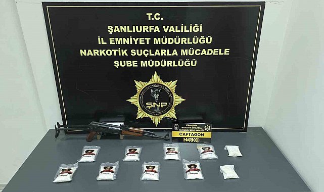 Şanlıurfa Viranşehir İlçe Emniyet Müdürlüğü ekipleri tarafından narkotik suçlarla mücadeleye yönelik belirlenen adrese operasyon düzenlendi. Operasyon kapsamında 1 şüpheli şahsın üzerinde, aracında ve ikametinde yapılan aramalar sonucunda; 10 parça halinde 9 bin adet captagon uyuşturucu hap ile 1 adet AK-47 uzun namlulu tüfek ele geçirildi.