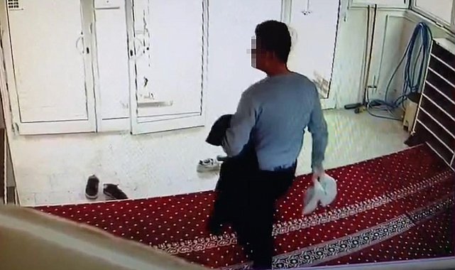 Şanlıurfa'nın Karaköprü ilçesinde camide yaşanan hırsızlık olayı güvenlik kamerasına yansıdı. Etrafı kontrol ettikten sonra ayakkabıları ve askıda bulunan montu alan zanlı hızla uzaklaştı.