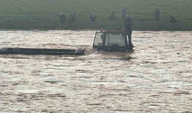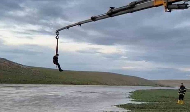 Şanlıurfa'nın Ceylanpınar ilçesinde, traktörüyle dereden geçmeye çalışırken mahsur kalan sürücü, vinç yardımıyla kurtarıldı.