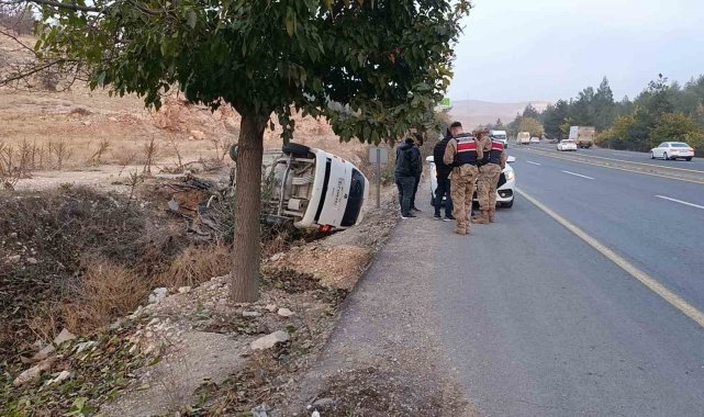Şanlıurfa'da hafif ticari aracın devrilmesi sonucu meydana gelen kazada baba ve oğlu yaralandı.