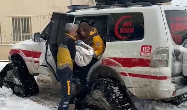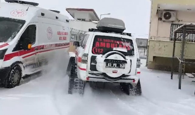 Şanlıurfa'da etkili olan yoğun kar yağışı ve olumsuz hava şartlarına rağmen 112 Acil Sağlık ekipleri, paletli ambulanslarla kırsal bölgelerde bulunan 3 ayrı vakaya zamanında müdahale ederek hastaları hastaneye ulaştırdı.