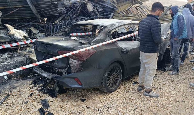 Şanlıurfa'da inşaat şantiyesinde otomobiller alev alev yandı