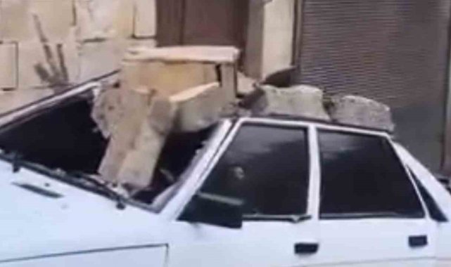 Şanlıurfa'da istinat duvarı otomobil üzerine devrildi