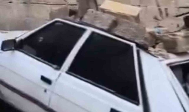 Şanlıurfa'da yoğun yağış nedeniyle bir evin istinat duvarının otomobilin üzerine devrildiği anlar güvenlik kamerasına yansıdı.