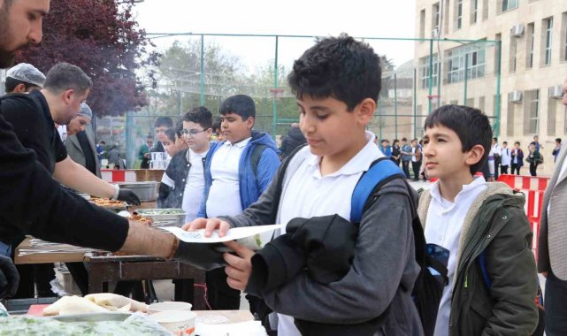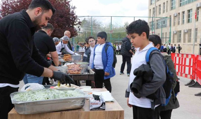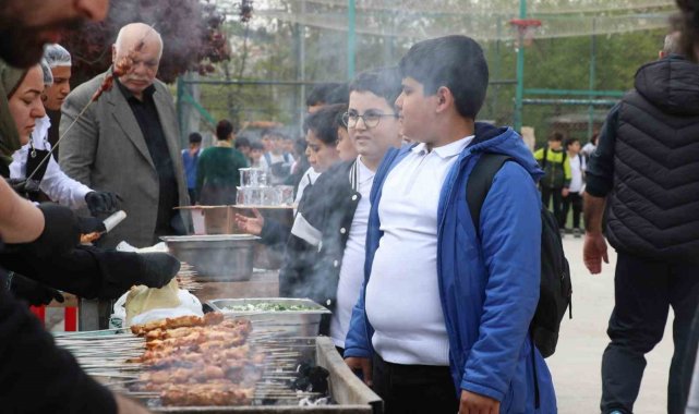 Şanlıurfa'da Prof. Dr. Necmettin Erbakan İmam Hatip Ortaokulu'nda öğrencilere kebap ikramı yapıldı. Okul bahçesinde kurulan mangallarda, kömür ateşinde pişirilen tavuk incik kebabı, sıraya giren öğrencilere dürüm halinde dağıtıldı. Öğrenciler, kendilerine ikram edilen kebabı okul bahçesinde yedi.