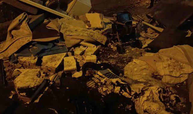 Öte yandan, patlama sonucunda evin duvarı yıkıldı. Mutfak eşyaları sokağa saçıldı.