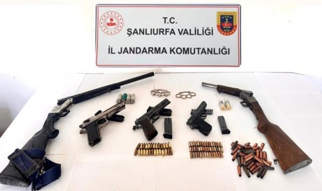 Şanlıurfa İl Jandarma Komutanlığına bağlı ekipler, yasa dışı ve ruhsatsız silahlanma ile mücadele kapsamında Şanlıurfa merkez, Siverek, Viranşehir, Suruç ve Birecik ilçelerinde belirlenen bazı adreslere operasyon düzenledi. Ruhsatsız silah bulundurduğu tespit edilen şüpheli şahısların araç, ev ve eklentilerinde yapılan aramalarda, 9 adet ruhsatsız tabanca, 3 adet av tüfeği, 11 adet tabanca şarjörü, 201 adet farklı boyut ve özelliklerde fişek ele geçirildi. 10 şüpheli gözaltına alındı.