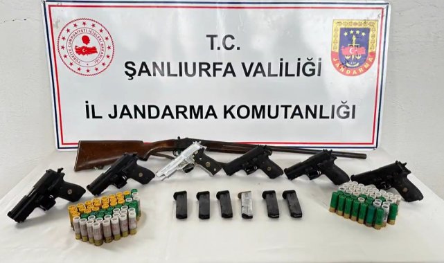 Jandarma Genel Komutanlığı koordinesinde İl Jandarma Komutanlığınca Şanlıurfa'nın Birecik, Bozova, Haliliye, Harran ve Siverek ilçelerinde belirlenen 10 adrese eş zamanlı operasyon gerçekleştirildi. Adreslerde ekiplerce yapılan aramalarda 3 adet piyade tüfeği, 13 ruhsatsız tabanca, 6 ruhsatsız av tüfeği, 5 kurusıkı tabanca, 34 farklı silahlara ait şarjör, 555 farklı çap ve ebatlarda fişek ele geçirildi.