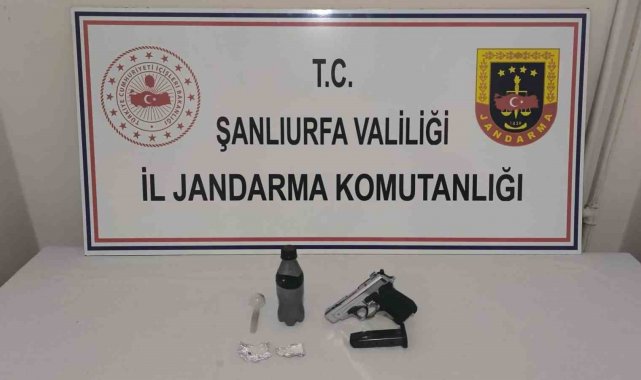 Şanlıurfa'da Hilvan, Siverek, Suruç ve Viranşehir ilçelerinde İlçe Jandarma Komutanlıkları ile Narkotik Şube Müdürlüğü ekiplerince, hassas burunlu narkotik köpeklerinin de katılımıyla şok yol kontrol uygulamaları yapıldı. Uygulamada 1 adet ruhsatsız tabanca, 1 adet kurusıkı tabanca, 2 adet şarjör, 18 adet fişek, 95 gram kenevir tohumu, 24 adet sentetik ecza hap, 6 gram sentetik uyuşturucu madde, 2 gram kubar esrar maddesi ele geçirildi.