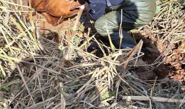 Şanlıurfa'da tahliye kanalına düşen 2 inek kurtarıldı