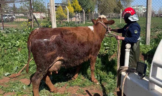 Şanlıurfa'nın Akçakale ilçesinde tahliye kanalına düşen 2 inek, itfaiye ekiplerince kurtarıldı.