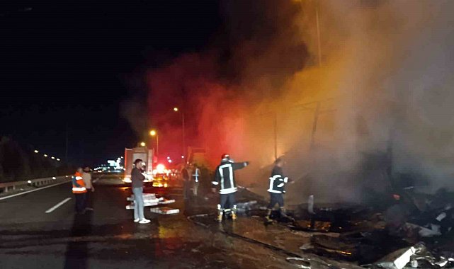 Şanlıurfa'da TV yüklü tır alev topuna döndü