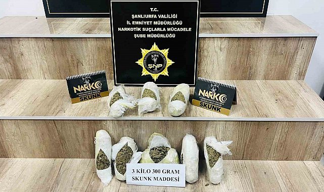 Şanlıurfa'da narkotik ekiplerince düzenlenen operasyonda 3 kilo 300 gram skunk ele geçirildi, 1 şüpheli tutuklandı.