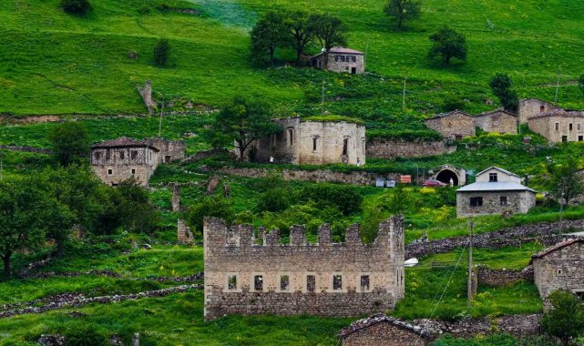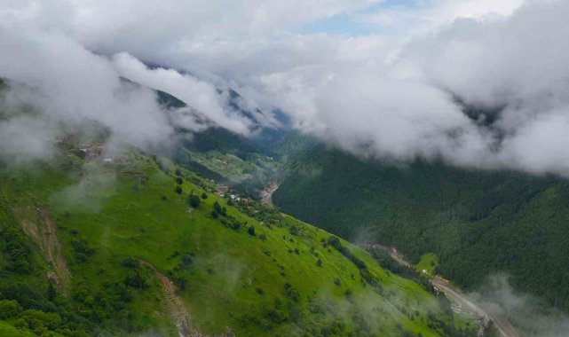 Gümüşhane'nin Dumanlı köyünde bulunan Santa Harabeleri, yaz mevsiminin gelişiyle birlikte tarihi yapıları, yemyeşil doğası ve dans eden sis bulutlarıyla ziyaretçilerini mest etti. El değmemiş yapısıyla dikkat çeken bölge, doğa ve tarih tutkunlarını kendine çekiyor.