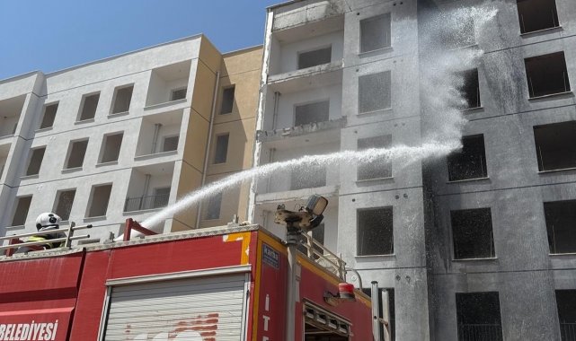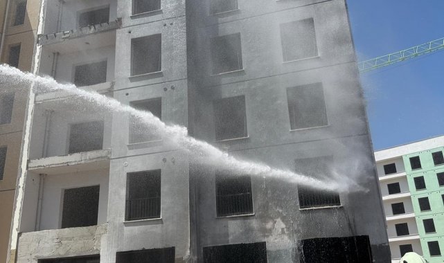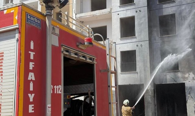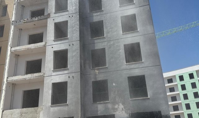Şantiye alanında binaya sıçrayan yangın söndürüldü