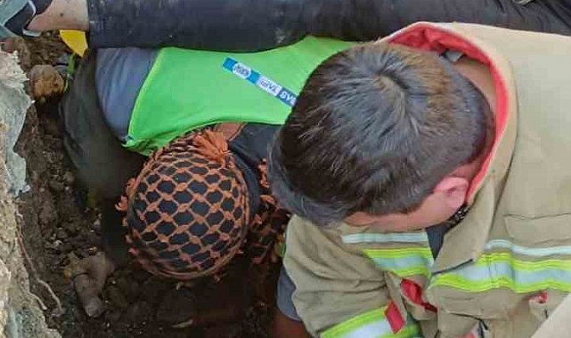 Şantiye alanında yaşanan göçükte mahsur kalan işçi kurtarıldı