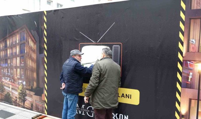 Ordu'da bir inşaat firması, yeni başladığı proje şantiye alanına televizyon şeklinde boşluk bırakarak 'şantiye izleme alanı' oluşturdu.