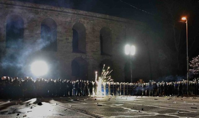 İstanbul Cumhuriyet Başsavcılığınca başlatılan ve İBB Başkanı Ekrem İmamoğlu'nun da gözaltına alındığı İBB'ye yönelik "yolsuzluk ve terör" soruşturmalarını protesto amacıyla bir grup, İBB'nin Saraçhane'deki binasının önünde toplandı. Gruptan bazıları Bozdoğan Kemeri önünde bekleyen polis ekiplerine meşale, su şişesi ve yanıcı materyaller atıldı.