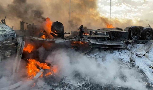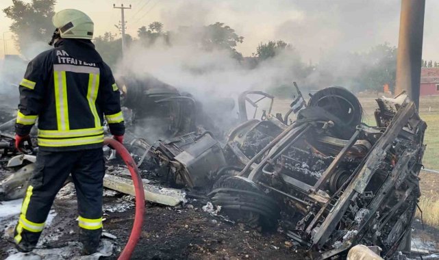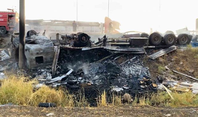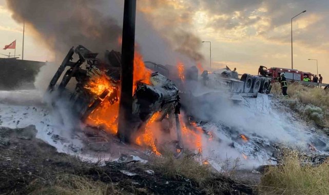 Olay, Aksaray - Ankara Kara yolunun 13. kilometresi Topakkaya beldesi kavşağında yaşandı. Edinilen bilgiye göre, Ankara'dan Aksaray istikametine seyreden Salih E. (24) idaresindeki 63 AGC 624 plakalı araç yedek parçası ve motor yağı ile antifriz yüklü tır, kavşağa geldiğinde sürücüsünün direksiyon hakimiyetini kaybetmesi sonucu kontrolden çıkarak önce refüje çıkıp aydınlatma direklerine çarptı, sonra bariyerleri yıkıp şarampole takla attı. Hurdaya dönen tır kaza sonrası yanmaya başlarken, tır kısa sürede adeta alev topuna döndü. Kazayı gören diğer sürücüler durumu hemen 112 Acil Çağrı Merkezine bildirdi. İhbar üzerine olay yerine polis, jandarma, itfaiye ve sağlık ekipleri sevk edildi. Kaza sonrası hem kaza hem de yangın nedeniyle yaralanan sürücü son anda kendini tırdan atarak kurtulurken, sağlık ekiplerinin ilk müdahalesinin ardından ambulansla Aksaray Eğitim ve Araştırma Hastanesi Acil Servisine kaldırıldı. Burada tedavi altına alınan yaralı sürücünün sağlık durumunun ağır olduğu öğrenilirken, çok sayıda itfaiye ekibi yangına müdahale etti. Ankara'dan Aksaray istikametine yol polis ekiplerince trafiğe kapatıldı. Yangın 3 saat süren çalışma sonucu tamamen söndürülebilirken, tırdan geriye adeta demir yığını kaldı.