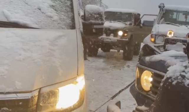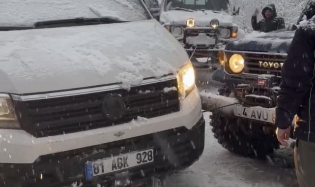 Şarampole kayan minibüsü, off-road araçları kurtardı