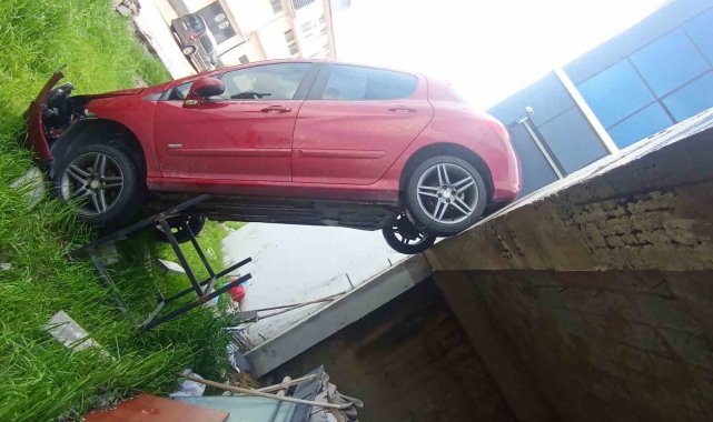 Şarampole uçan otomobil dik kaldı: 1 yaralı