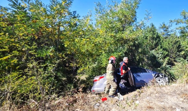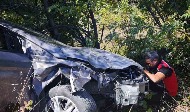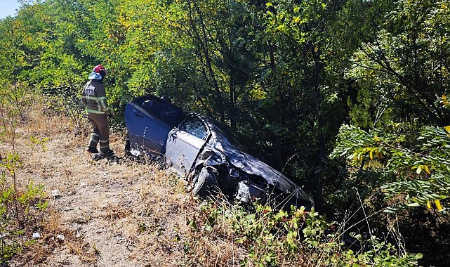 Şarampole uçan otomobildeki 3 kişi yaralandı