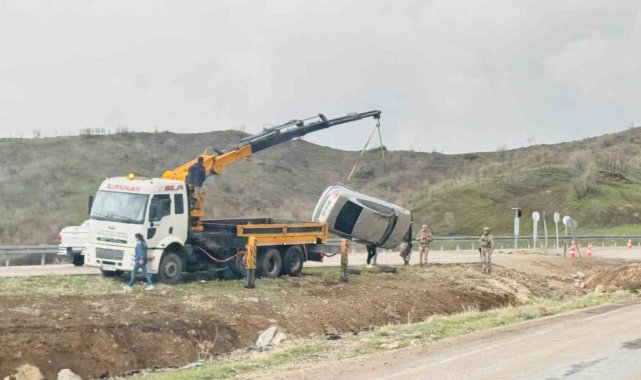 Şırnak merkeze bağlı Balveren Beldesi Milli Jandarma Karakol Komutanlığı mevkiinde bir otomobil şarampole yuvarlandı. Şans eseri otomobilde bulunanların burnu bile kanamadı.