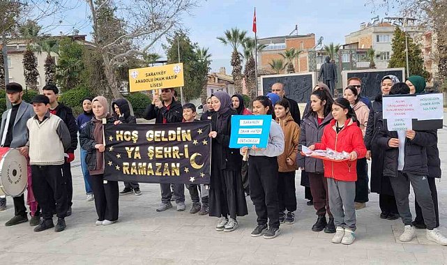 Denizli'nin Sarayköy İlçesinde mübarek Ramazan ayının gelişi sosyal sorumluluk projesi kapsamında büyük bir coşkuyla kutlandı. 'Geleneklerimizle Ramazan Ayı Ruhunu Yaşatıyoruz' sloganı ile Sarayköy Anadolu İmam Hatip Lisesi ve ortaokulu öğrencileri Ramazan ayı ruhunu yaşatmak için ramazan davulu eşliğinde maniler söyleyerek, ilce sokaklarını gezdiler . Sarayköy Anadolu İmam Hatip Lisesi ve ortaokulu öğretmen ve öğrencilerinin katılımıyla gerçekleştirilen etkinlikte, öğrenciler ellerindeki pankartlarla geleneklerin yaşatılmasına, Ramazan ayına ve oruç tutmanın önemine dikkat çektiler. İlçe sokak ve caddelerinde yapılan yürüyüş esnasında geleneksel kıyafetli öğrenciler, ilçe sakinlerine şeker, imsakiye ve iftar hurması ikram ettiler. Öğrencilerin coşkulu Ramazan ayı karşılama etkinliği ilçe sakinlerinin de beğenisini kazandı.