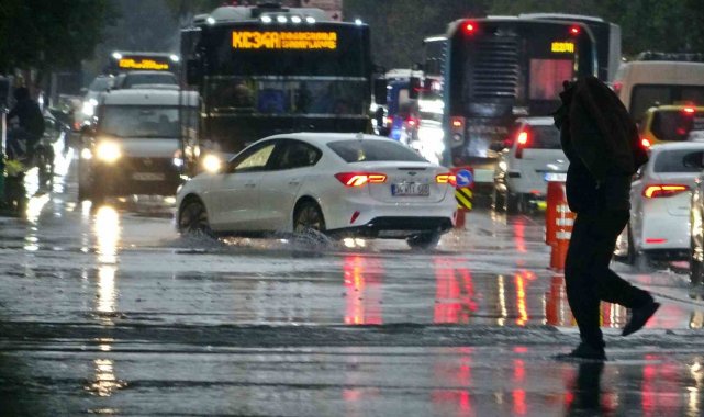 Meteoroloji'nin sarı alarm verdiği Antalya'da sağanak etkili oldu. Akşam saatlerine doğru başlayan yağış nedeniyle yollarda su birikintileri oluştu, araç sürücüleri ve yayalar zor anlar yaşadı.