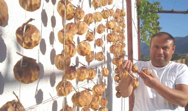Manisa'nın Sarıgöl ilçesinde her yıl sonbahar aylarında yapılan cennet elması (Trabzon hurması) kurutma işlemleri başladı. Evlerin balkonları ve bahçeleri, ipe dizilen elmalarla renkli bir görünüme büründü.