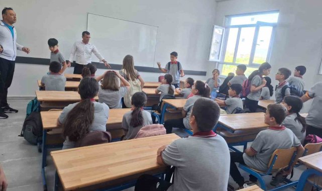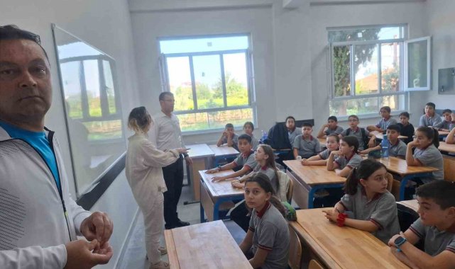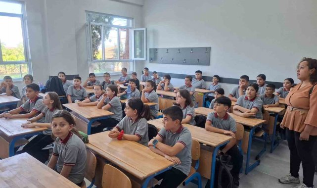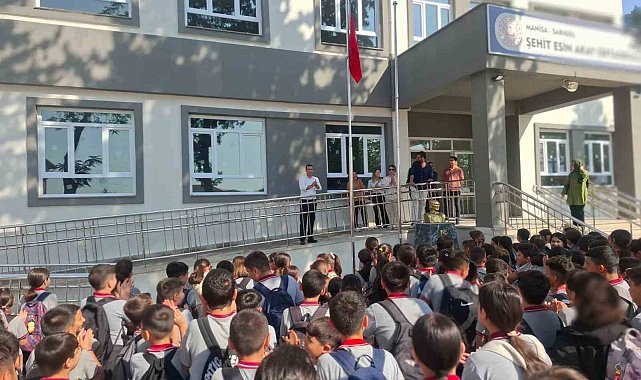 Sarıgöl Şehit Esin Akay Ortaokulu'nun yeni binasının tamamen bitmesinin ardından başka bir okulda eğitim öğretim gören öğrenciler tekli eğitime başladı.