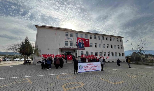 Sarıgöl'de öğrencilerden bayrağa anlamlı sahiplenme