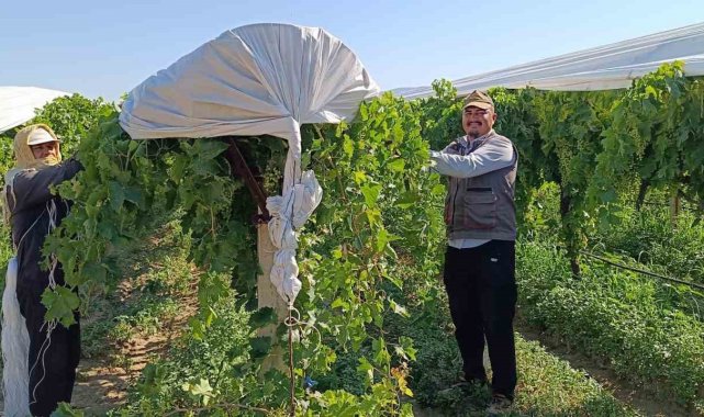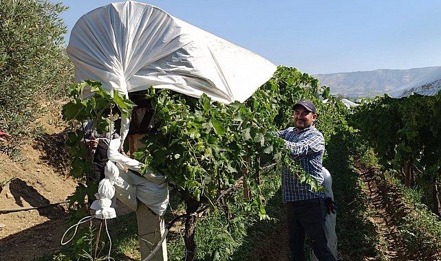 Sarıgöl ve çevresinde bulunan toplam 113 bin dekarlık üzüm bağının yaklaşık yüzde 90'ı beyaz manevile ile örtülerek, hasat dönemine kadar dolu, sıcak dalgası ve zararlı böcekler gibi doğa olaylarına karşı korunuyor.
