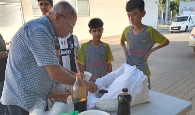 Manisa'nın Sarıgöl ilçesinde Üzüm Kooperatifi Başkanı ve aynı zamanda Türk Kızılayı İlçe Koordinatörü olan Yusuf Tüfekçi, Muharrem ayı dolayısıyla vatandaşlara pekmezli karbastı ikram etti.