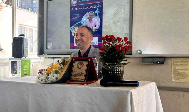 Sarıgöl Atatürk Ortaokulu Konferans Salonunda düzenlenen öğrenci-yazar buluşmasının konuğu olan Dr. Mehmet Önder Karacaoğlu, öğrencilere yazdığı kitapları tanıttı ve öğrencilerden gelen soruları cevaplandırdı.