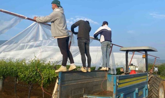İlçe çevresinde zarar görmeyen üzüm bağlarının üzerlerinin dolu tül ile örtme çalışmaları her geçen gün artış gösterdiği ifade edildi.