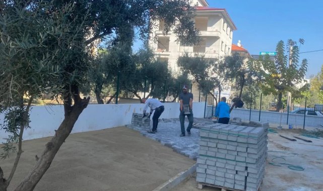 Sarıgöl Dört Eylül İlkokulu'nda yapılan çevre düzenleme çalışmalarıyla okul bahçesi parke döşemeler, çiçeklendirme ve yeni sosyal alanlarla daha modern ve estetik bir görünüme kavuştu.