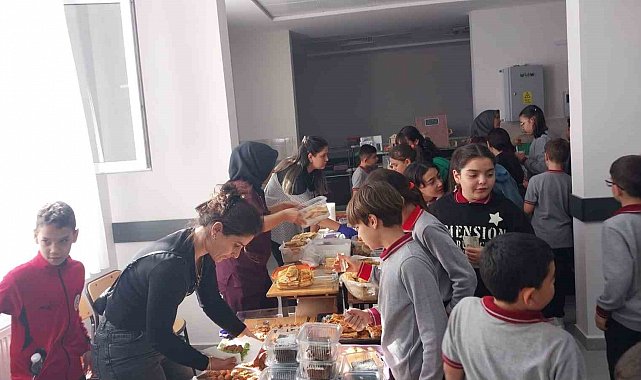 MANİSA (İHA) – Manisa'nın Sarıgöl ilçesinde Şehit Esin Akay Ortaokulu 5. sınıf öğrencileri, Gazze'deki çocuklara destek olmak amacıyla okul bahçesinde gıda standı kurdu. Etkinlikten elde edilen gelir Gazze'deki çocuklara ulaştırılacak.