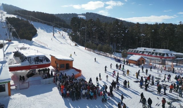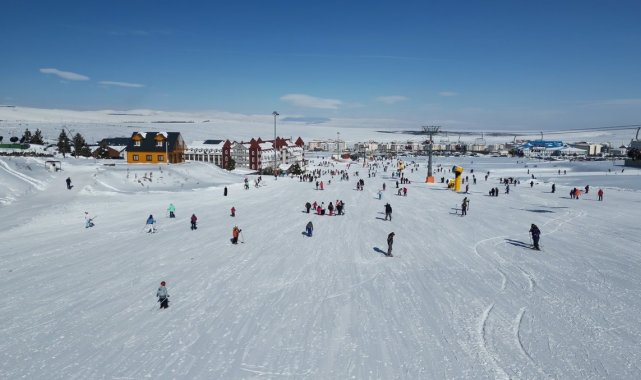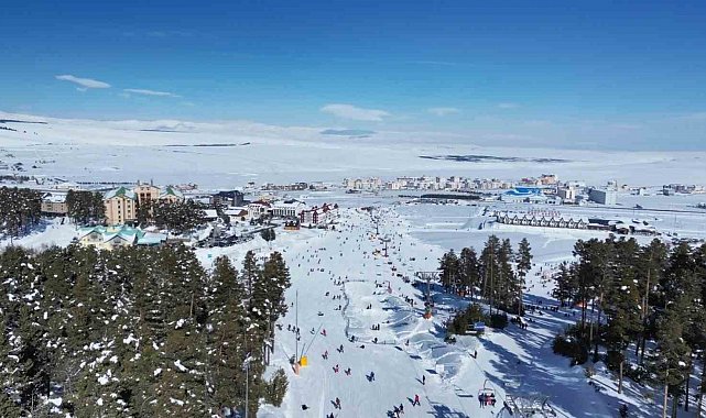 Türkiye'nin en önemli kayak merkezlerinden biri olan Sarıkamış Kayak Merkezi, sömestre tatilinin son günlerinde hafta içi olmasına rağmen doldu taştı.