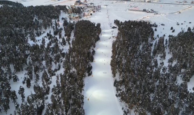 Yaklaşık 2 metre kar kalınlığının olduğu ve kristal kar üzerinde kayak severlere unutulmaz anlar yaşatan Sarıkamış Kayak Merkezi'nin pistlerine kendilerine atan kayak severler renkli görüntüler ortaya çıkardı.