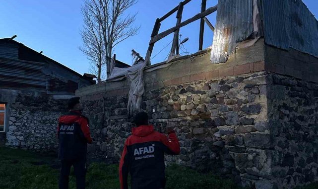 Kars'ın Sarıkamış ilçesinde fırtına nedeniyle bir okulun ve 7 evin çatısı uçtu.