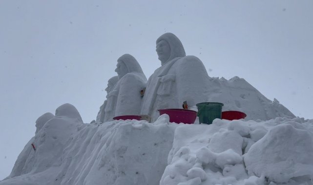 Sarıkamış'ta kardan heykellerin yapımı tamamlandı