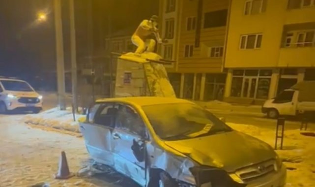 Kaza; Kars'ın Sarıkamış ilçesinde saat 04.00 sularında meydana geldi. Sarıkamış ilçesine seyir halindeki otomobil sürücüsünün direksiyon hakimiyetini kaybetmesiyle yoldan çıkarak ilçe girişinde bulunan kayakçı heykeline çarptı. Kaza da otomobilde bulunan 3 kişi yaralandı.