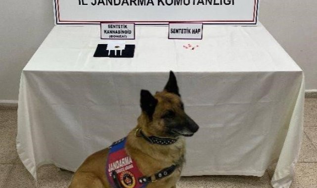 Yapılan kontrol esnasında durdurulan bir araçta, "Tabla" isimli uyuşturucu madde arama köpeği eşliğinde yapılan aramada; 1 kişinin eşyaları ve üzerinde 5 gram bonzai maddesi ile 7 sentetik hap ele geçirildi.