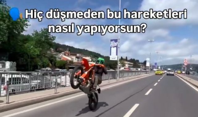 Sarıyer'de motosikletle akrobasi hareketler yapan sürücünün o anları cep telefonu kamerasına yansıdı. Hem kendi hem de başkalarının canını hiçe sayan sürücüye toplam 5 bin 208 TL idari para cezası uygulandı.