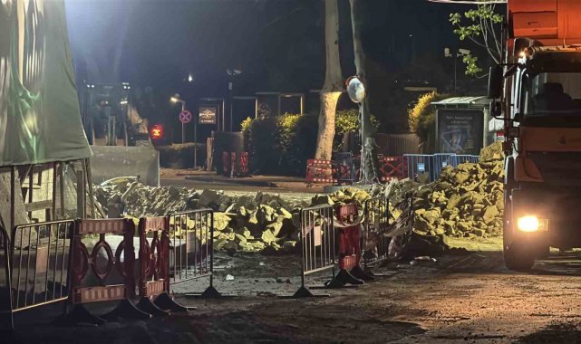 Sarıyer Eski Büyükdere Caddesi'nde dün gece saatlerinde çökme meydana gelmişti. Çökme sonrası bölgede gün boyu belediye ekipleri tarafından sürdürülen dolgu ve onarım çalışmaları gece saatlerinde de devam etti. Polis ve zabıta ekiplerinin aldığı güvenlik önlemleri çevresinde çalışmalar sürdürülürken çöken yolun bulunduğu güzergah trafiğe kapatıldı.