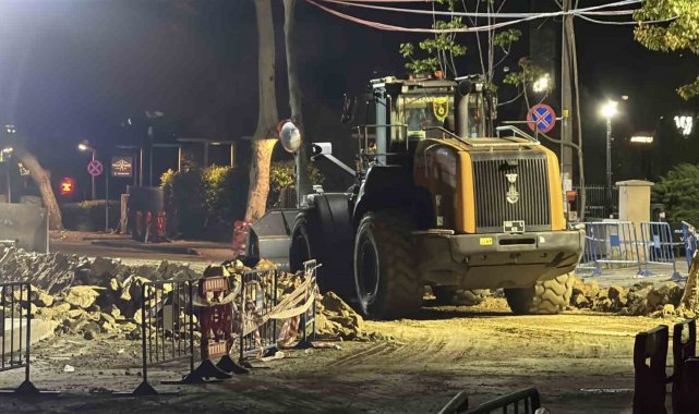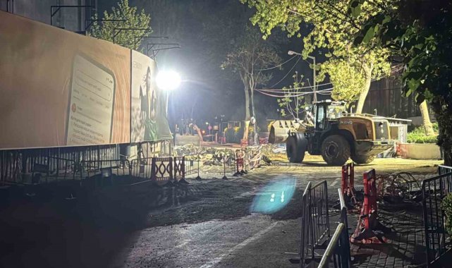 Sarıyer'de çöken yolda yapılan onarım çalışmaları gece boyu devam etti