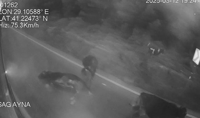 İETT otobüsü ile hafif ticari aracın çarpıştığı kaza anlarının güvenlik kamerası görüntüleri ortaya çıktı. Görüntülerde, otobüs şoförünün ineğe çarpmamak için manevra yaptığı anlar görülüyor. Otobüsün çarptığı inek yere düşerken, diğer hayvanlar ise kaçıyor.
