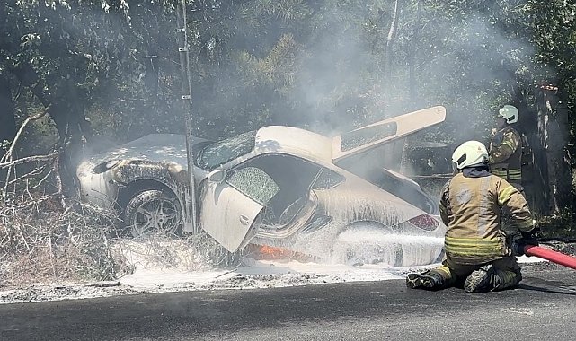 Sarıyer'de sürücüsünün kontrolünü kaybettiği yaklaşık 10 milyon lira değerindeki Porsche marka otomobil, yeşil alana savruldu. Kaza yapan sürücü araçtan çıktıktan kısa süre sonra lüks otomobil alev aldı. Yangın itfaiye ekipleri tarafından söndürüldü.